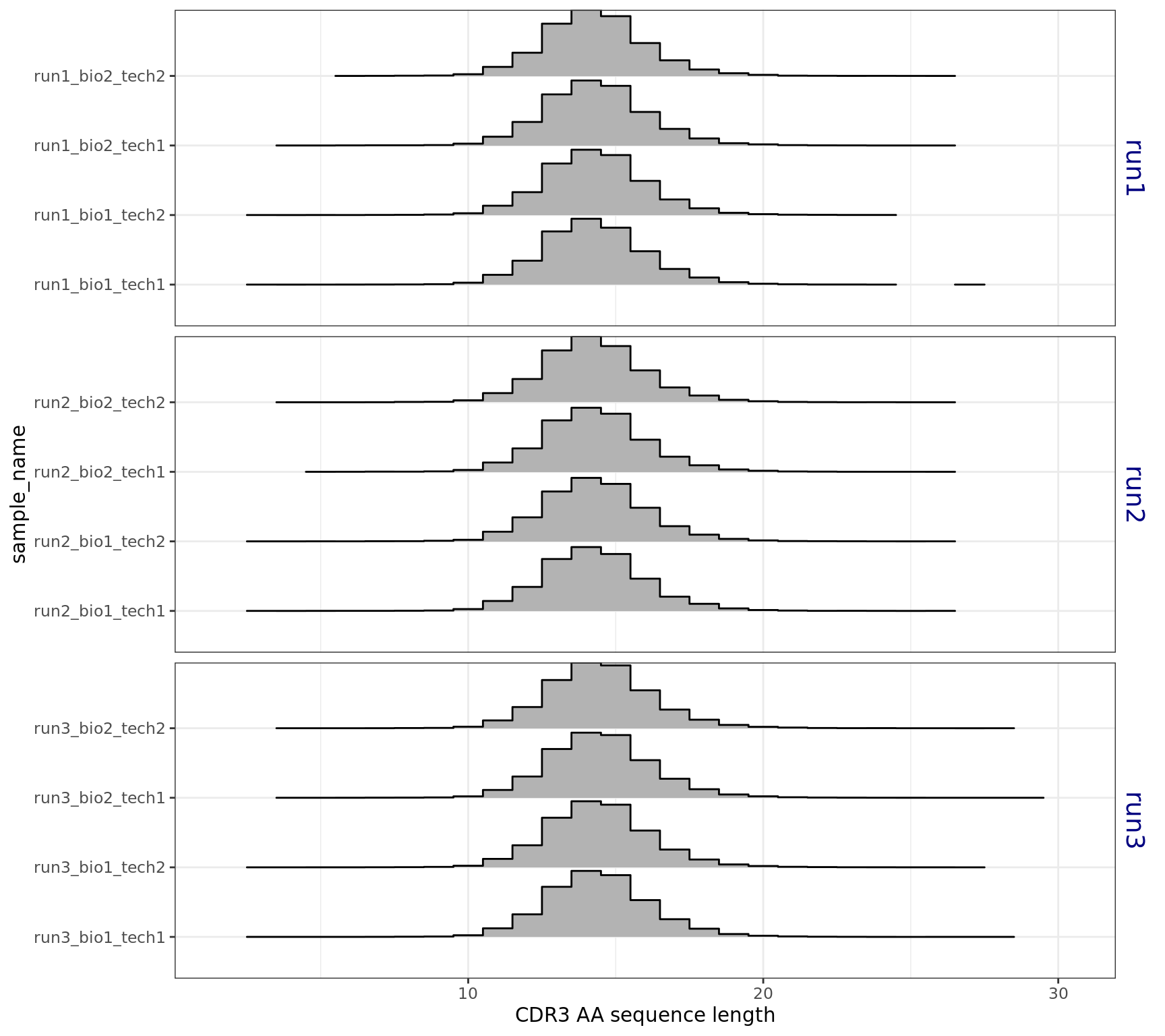 Figure 19: Histograms of CDR3 AA sequences’ length