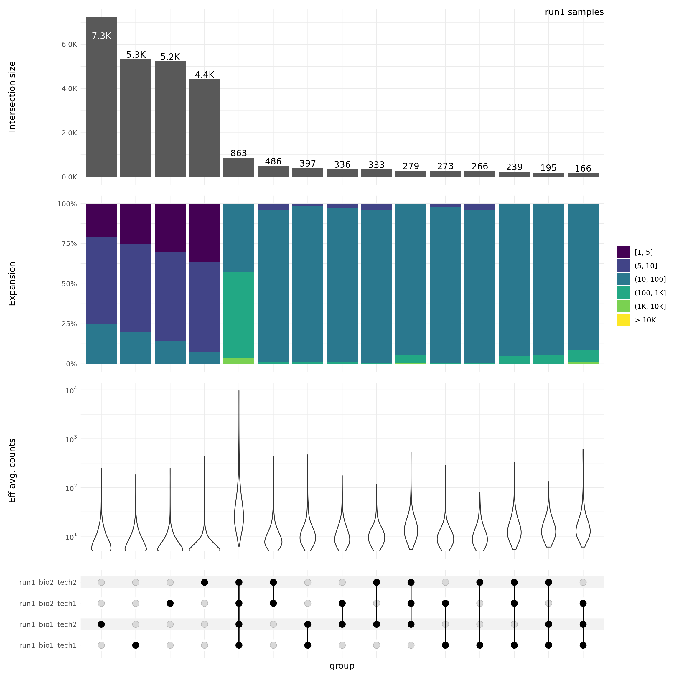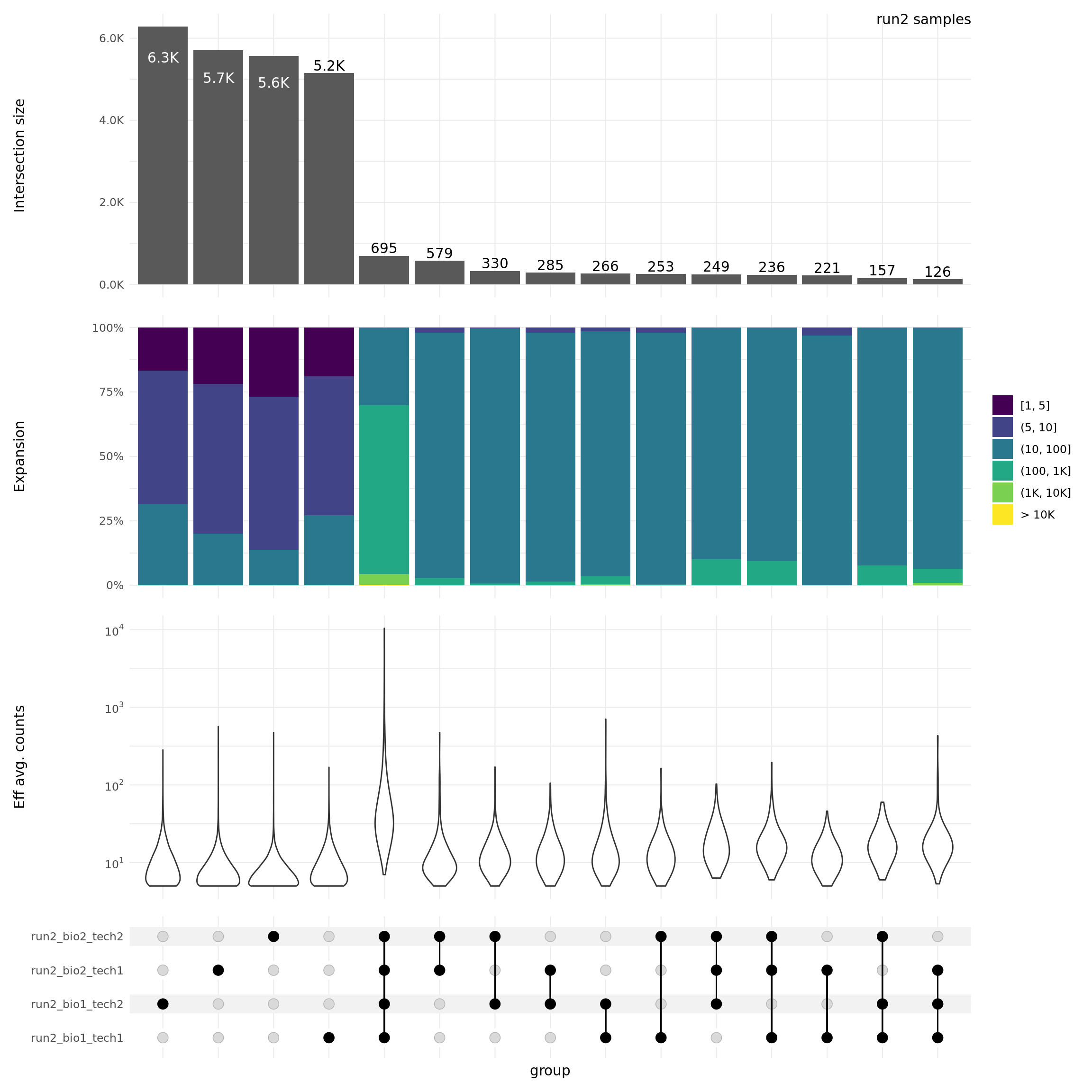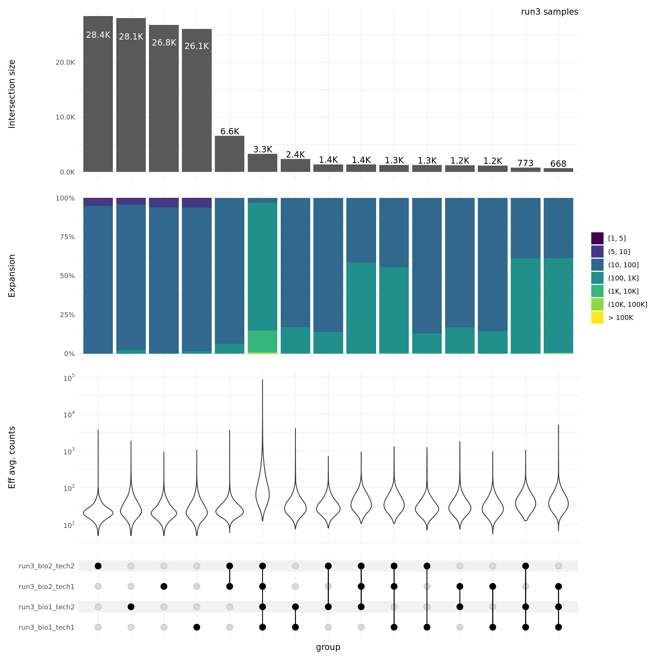 The figures below have clonotypes repeated \(\geq\) 5 times