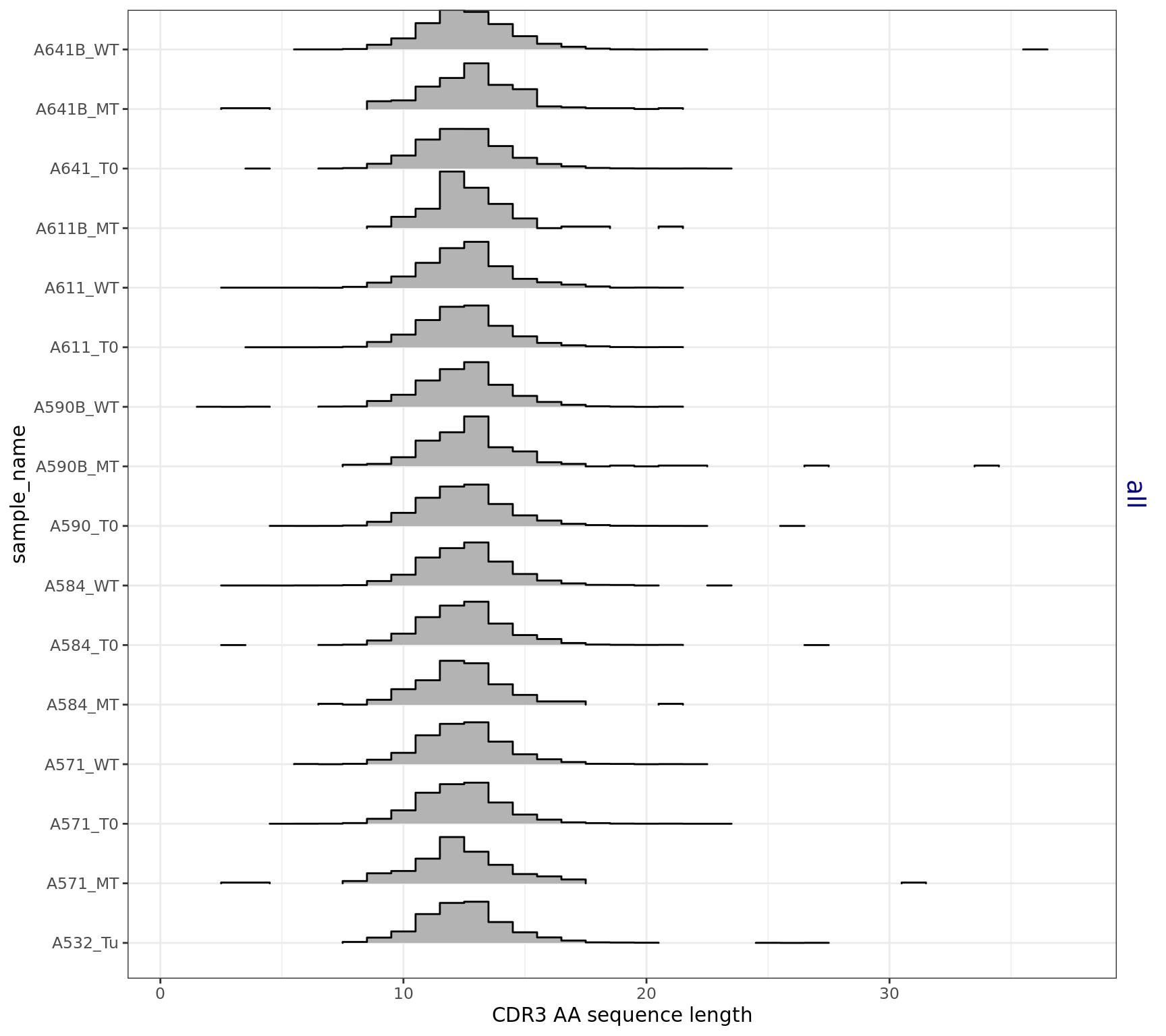 CDR3 sequence length analysis